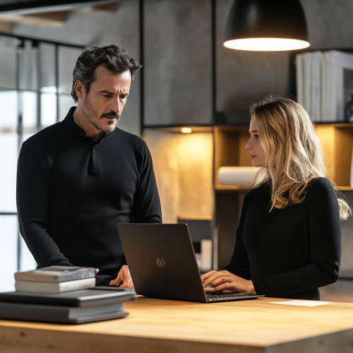 Imagine a 40-year-old man in front of his laptop using the France.tv site, with a young female investigator who asks him questions and observes what he does on his screen, the two are in a user test room that looks tech and design and bright with light wood furniture