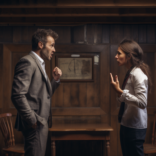 a newspaper collage style image from 90s, a white ugly woman in her 43 years old argues with a afro-american, mixed race, teenager boy who is 18 years old. real emotions, real image, 300dpi, high-res, movie still like shot, cinematic , cineamtic frame, movie, newspaper 1992