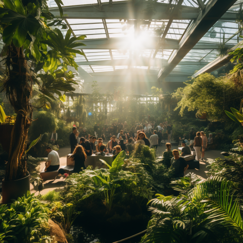 Botanic garden in Rotterdam with people partying at hard techno using drugs