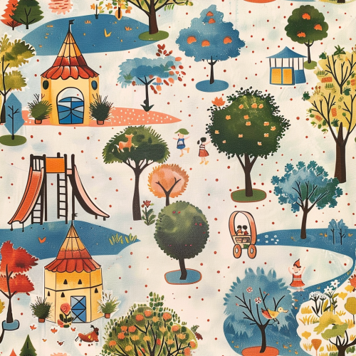 child’s room wall paper design featuring a playground motif --tile --v 6.0