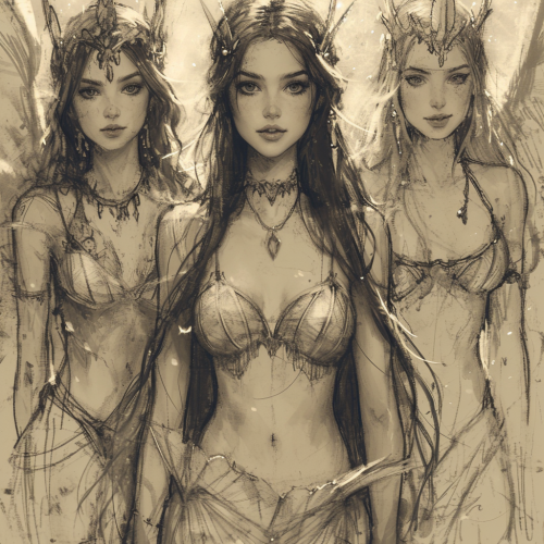 dark fantasy sketch mermaids, harpies fantasy --style raw --s 750 --weird 2 --chaos 10 --v 6.0