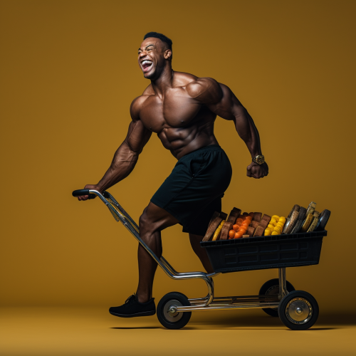arron donald wearing a rams football jersey number "99", pushing a shopping cart in a grocery store --ar 2:3