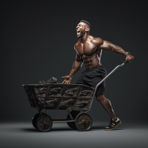 Colorful image of a man pushing a cart in the street