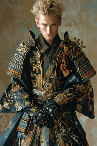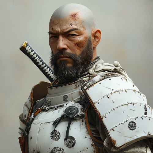 A resolute samurai army, standing against the Mongol invasions of the 13th century, swords flashing in the chaos of battle, iconic armor glinting in the sunlight. Hyper realistic. Photographic. UHD. Dramatic imagery. High contrast. Action shot. Candid 8K