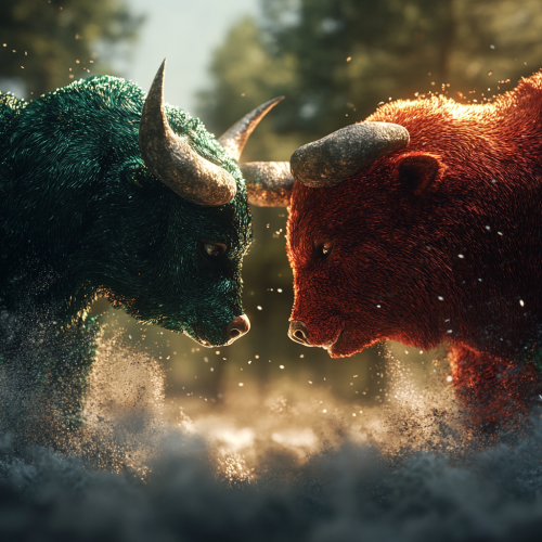 crypto, crypto bull, green bull is fighting with red bear and green bull win this fight, money, cryptocurrency money, bitcoin, realistic, hyperrealistic, cinematic --s 250