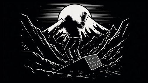 a man running from a slow burn. He is made of newspaper and trying to escape the madness of the world. minimalistic design.