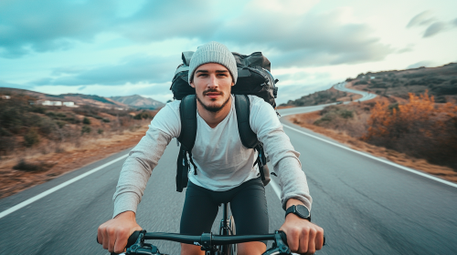 ultra wide angle of a man surfing the river, full landscape is visible with a facial expression of determination and energy, weraing a wetsuit and a cap backwards, In the background people are cheraing up for him. It's a summer day. Wide-angle shot. photo taken in the style of Canon EOS R5 --style raw --ar 16:9 --v 6.1
