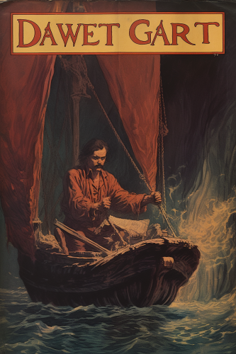 1970s Dark Fantasy book cover paper art Dungeons and Dragons drawing style, man in a boat in a swap. --ar 2:3