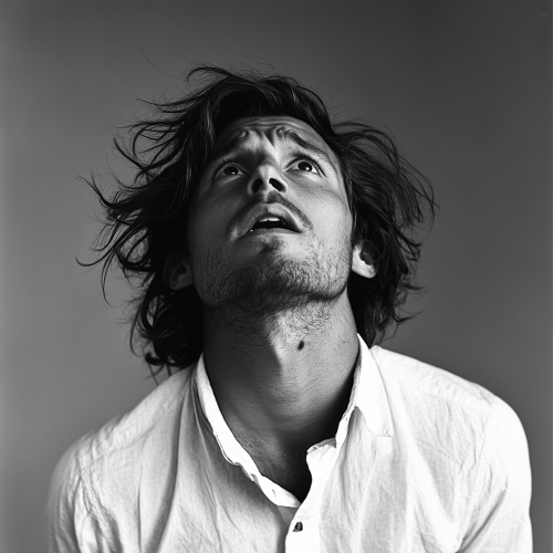 photo of an american- mexican-portuguese man, oblong face, dark brown hair, dark brown eyes, and tan skin. He is wearing a plain matte-colored t-shirt. Shot on kodak portra 160 film --s 250
