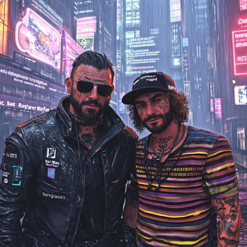 Un homme de nationnalité américaine, Ayant comme coupe de cheveux une middle part. En regardant en haut a droite. Portant une veste et un casque de réalité virtuelle, entouré de lumière néon bleue et verte en majorité , et un fond avec un peu de brume avec une ville au japon éluminer avec des led en flou. Un portrait en pied, surréaliste et hyperréaliste, dans un style esthétique cyberpunk photographique. L'image est hyperréaliste, rendue avec Octane, haute résolution, étalonnage professionnel des couleurs, ombres douces, contraste minimal. --ar 1:1