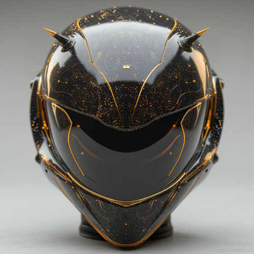 futuristic bike helmet spikes goth only helmet prototype image in black and gold color with decorative elements,cyber punk style grey background front view 16 k resolution --v 6.0 --s 750