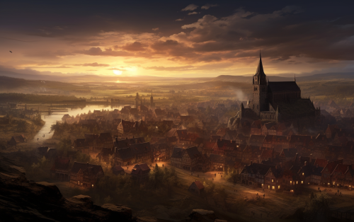 A panoramic view of Hamilton’s cityscape at dusk, with the iconic industrial smokestacks softly blending into the horizon, the towering buildings bathed in the golden glow of the setting sun, and the lush greenery of surrounding nature embracing the urban sprawl--an urban landscape that symbolizes the fusion of nature and industry. Art Style: Urban Realism