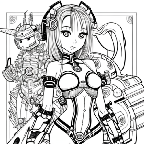 a highly detailed image depicting japanese automation including robots and assemly lines, designed as a detailed coloring page. The scene is black and white and thick bold lines, perfect for coloring. --ar 11:8