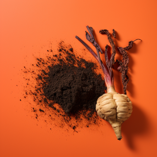 On a white background, three thick tree roots are stacked horizontally, overlapping each other. The surface is rough and textured, with a brown color. --s 50