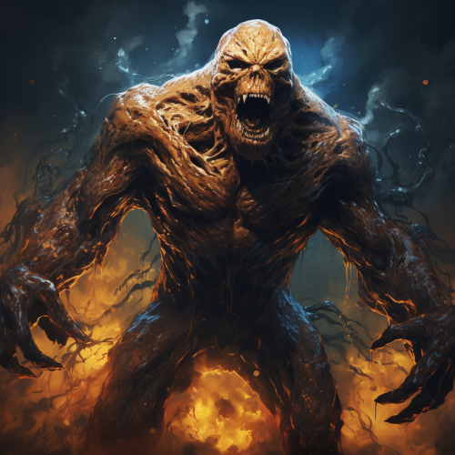 A Rubber Elemental in a fantasy world, humanoid in form, with a body made entirely of smooth, elastic rubber. Its limbs are flexible and can stretch far beyond normal lengths, with rounded, balloon-like shapes. The surface of its body is matte black, with parts that shine like rubber under light. Its body bounces slightly as it moves, emphasizing its springy, durable nature. The elemental's eyes are bright yellow, glowing with a mischievous energy. The environment around it is a landscape of bouncy rubbery terrain, with trees and rocks made of soft, rubbery material, creating a playful and surreal atmosphere. --v 6.0