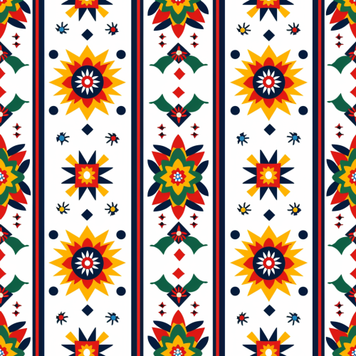 Textile pattern repeat inspired on Colombian typical culture vectors --tile --stylize 250 --v 6.0