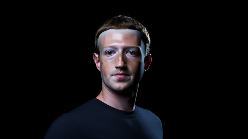suspicious person wearing a fake Mark Zuckerberg mask. --ar 16:9