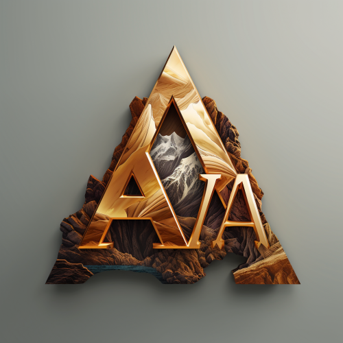 Generate a highly detailed 8K custom sticker design where the bold letters 'AAA' are featured, with the middle 'A' larger and encased "AAA" within a stunning mountain range with three peaks. The peaks of the mountains should align with the contours of the middle 'A'. Render in animated in brown and white