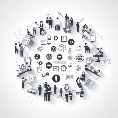 a poster layout with all the black and white vector icons of digital marketing all around and in centre Digital Marketing Party title