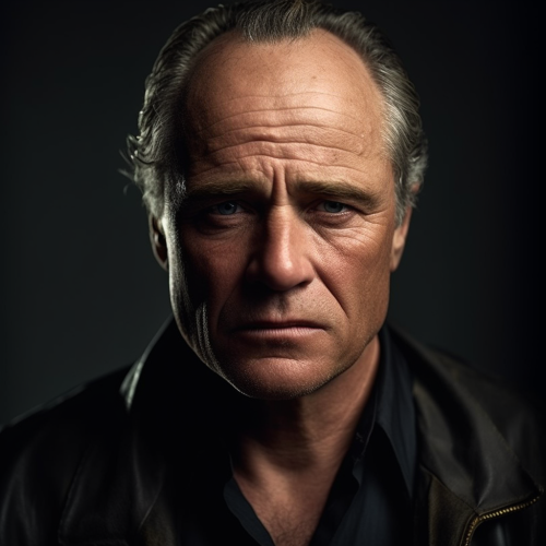 50 years old film director looks like Marlon brando he has a ample forehead..secured and nice