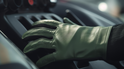green F1 gloves, aston martin look and feel, 4k, photorealistic, hyper-realism, close up shot, DSLR, Depth of field, high resolutions --ar 16:9 --v 5.0