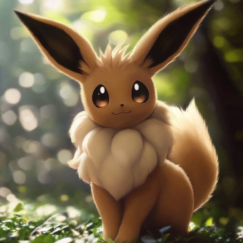 an anime character creature that looks like they belong in pokemon. The character should be friendly looking and has the physical features of eevee and sobble combined into one character