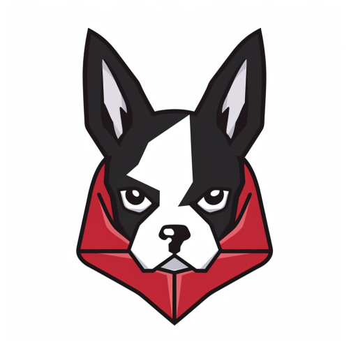 simple mascot of clothing company, boston terrier head looking straight, embroidery, vector graphic, low detail, white background --no realistic photo details