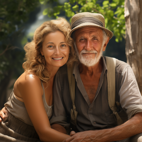 a couple walking along a quiet path, the background is a beautiful lake shrouded in morning mist in Virgina, county Cavan, Ireland, symbolizing a quiet lakeside retreat. Created Using: soft-focus, warm hues, tranquil lake view, morning serenity theme, photographic clarity, hd quality, natural look --ar 4:3 --v 6.0