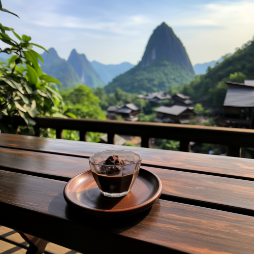 realistic photo of an italian gelato in a wooden cup on a table. The photo has a high zoom on the texture of the gelato and the light is in dim light --ar 16:9