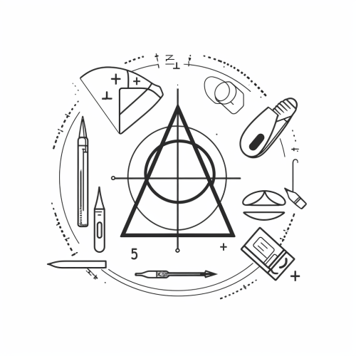 Minimalist line art of simple math tools like a ruler, triangle, square, and compass, black and white, thin lines, clean and modern, no background, suitable for a math tutor's business card --v 5.0 --ar 1:1