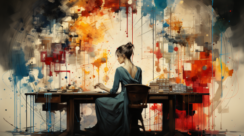 math, computer science, physics in the style of abstract Norman Rockwell --ar 16:9 --s 900