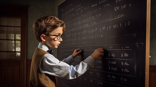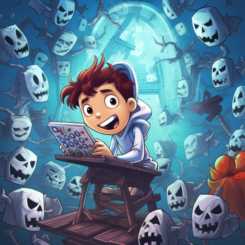 a cartoon of a kid trying avoid doing homework inside of a haunted house with spooky ghosts that are doing math