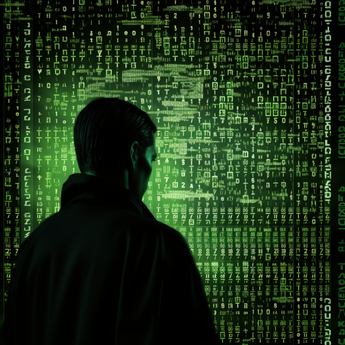 face of Anthony Richardson made of matrix code glowing cyan blue and magenta, minimalism, matrix, raw, no color banding, high bit depth, vintage, --ar 3:2 --s 750