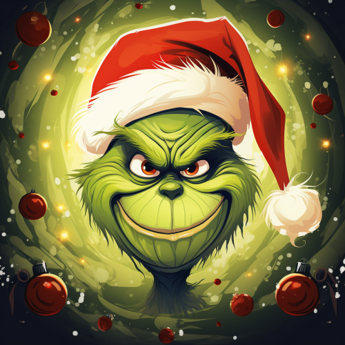the grinch in a vector style wide angle christmas time looking at you