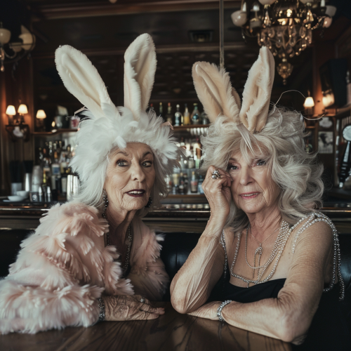40 year old females dressed up as bunnies, longshot, hyper realistic, professional camera, --v 5.0