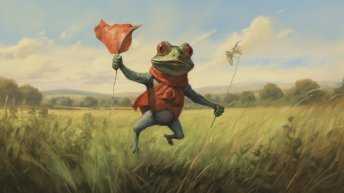 Illustration of a humanoid frog flying a kite