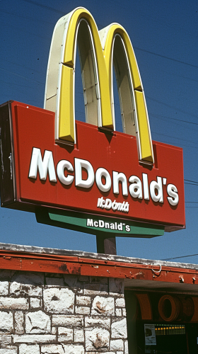 a 80s era mcdonalds poster, text in the font typeface of neue haas grotesk that spells "McDonald's" --ar 16:9 --v 6.0 --style raw