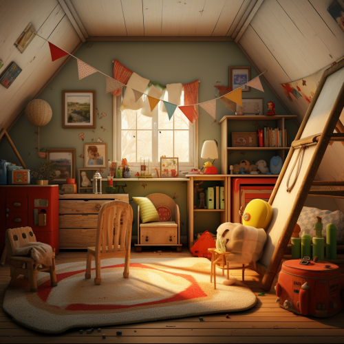 draw a photorealistic design project for a children's room in a modern minimalist style in light colors