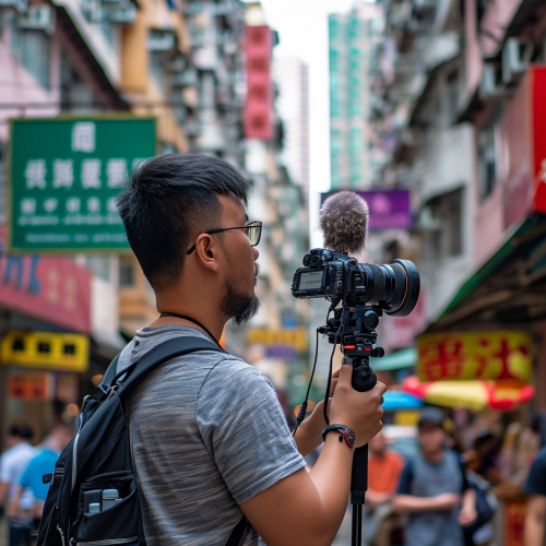 a cover photo for video podcast for street interview in Hongkong --s 50 --v 6.0