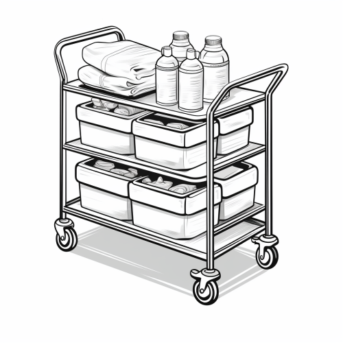 black and white vector line drawing of a hospital cart containing only four sterilized surgical trays