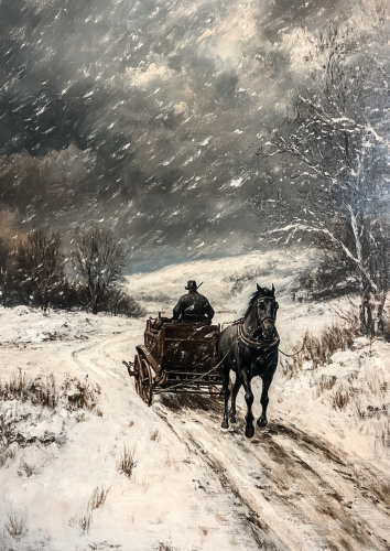 two horse dragging Brougham Carriage of 19th century England, running on the road of 19th century, 8k, cinematic still shot, cloudy day, HDR, high resolution, shot on IMAX Laser, intricate details --ar 16:9