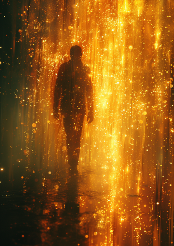 A lustrous Human Light and revelation image with human Pixelation in computer graphics, Pixel art forum, a human style and a Fish-eye view --v 6.0 --c 15 --ar 5:7 --s 750