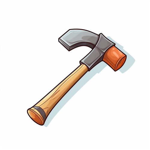 cartoon, grim reaper, wearing tool belt, hammer in hand, hooded cloak, scythe behind his back