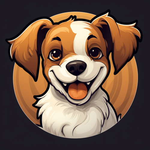 cute dog design jpg, in the style of caricature-like illustrations, dark white and amber, 2d, wealthy portraiture, rounded, high resolution, tondo, minimalist, happy and cheerful, stylish