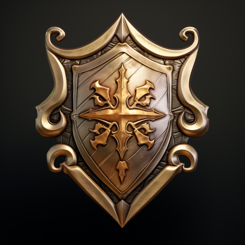 scepter medieval family shield, style of clash of clans, game icon, metallic bronze texture, 8k, cinematic