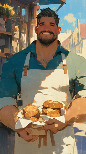 oil painting::3 create a man who sells something, natural bright light, depth of field, photorealistic, commercial photo, high details, beautiful composition, hd quality, vibrant colors, shallow depth of field, natural look --ar 16:9 --v 6.1