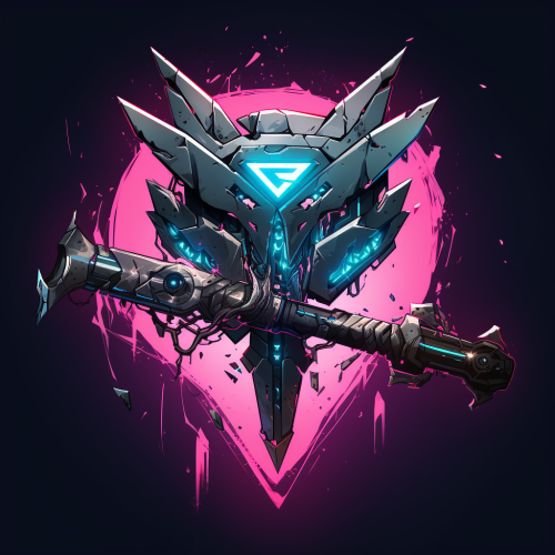 a logo that contains an axe and artwork, cyberpunk artstyle, gothic futurism, webtoon, comic book style