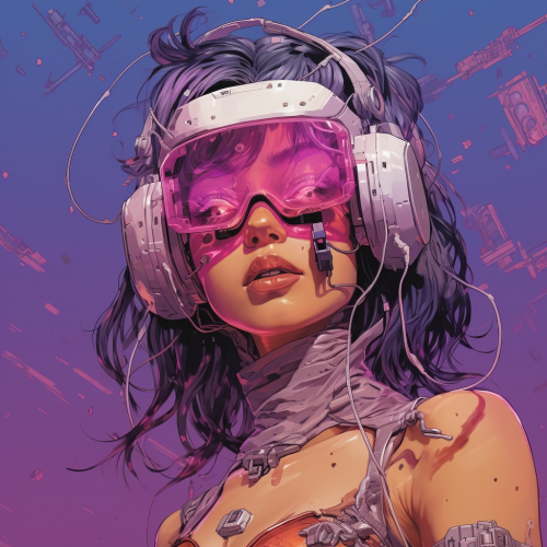 This is a cover for the cyclops comics, in the style of cyberpunk dystopia, josan gonzalez, haroon mirza, light peach, purple and pink, virtual reality, realist detail, anime