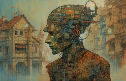 Futuristic Viking in Cyberpunk Comic Artwork