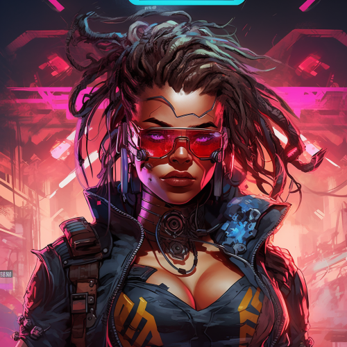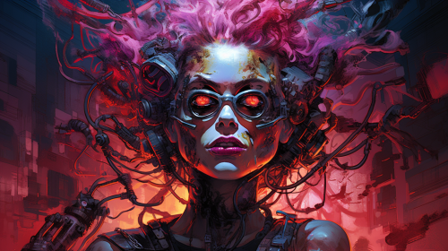 Cyberpunk video game character portrait by Joe Madureira, comic art, multi-panel compositions, uhd image, matte background, vibrant comics, strong contrast between light and dark